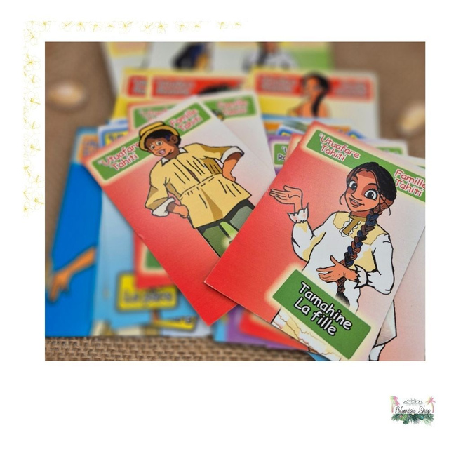 Les noms des familles et des membres sont écrits en français et en tahitien, pour mêler le plaisir du jeu à la découverte culturelle. Parfait pour jouer en famille, avec les enfants comme avec les grands, et apprendre quelques mots de reo sans s’en rendre compte.
