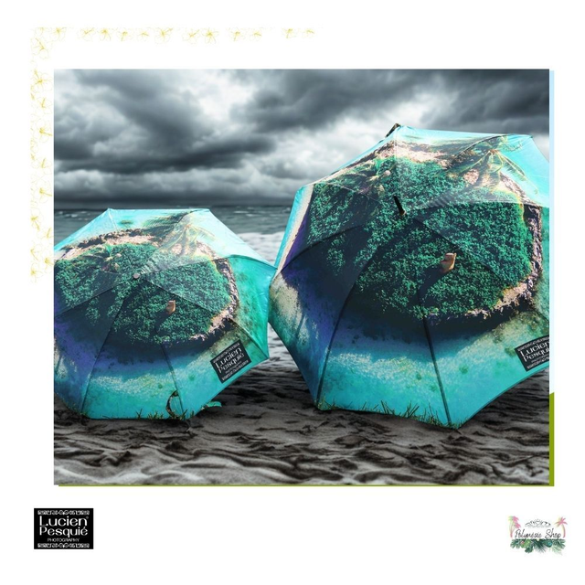 Véritable accessoire de mode, ce parapluie allie style, praticité, qualité et dépaysement. Collection unique créée avec les photos du photographe Lucien Pesquié, connu et reconnu en Polynésie pour ses clichés à la fois graphiques, colorés et empreint de culture. Ton parapluie sera livré dans un pochon bandoulière 100% coton OFFERT.