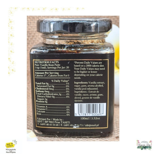 Fabriquée à base de véritables gousses de vanille de Polynésie, cette pâte de vanille va devenir ton meilleur ami pour tes préparations sucrées ou salées… Véritable puissance en bouche, il n'est pas utile d'en mettre beaucoup. Je te conseille même d'en remettre plutôt que trop en mettre.