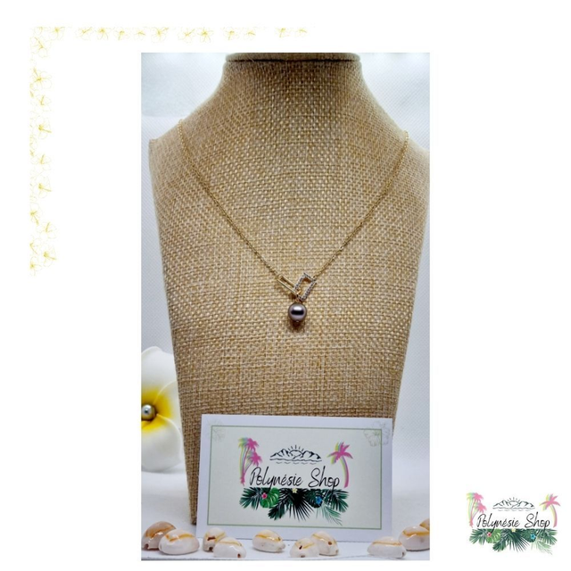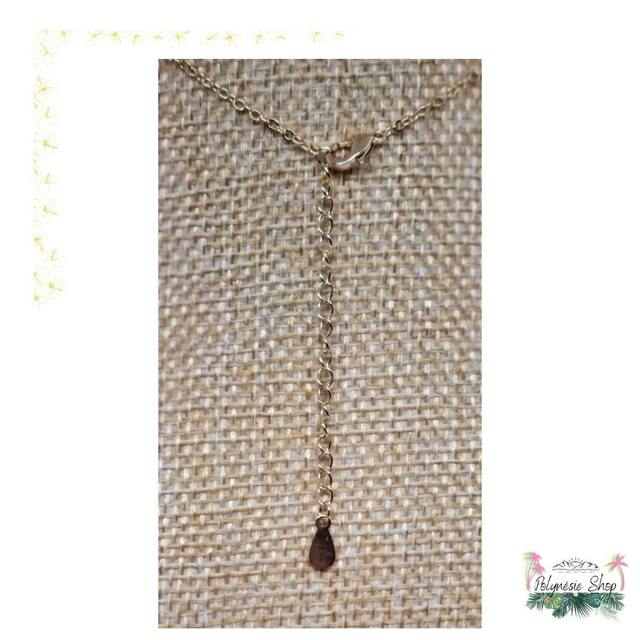 L'originalité est au rdv grâce à ce collier avec perle de Polynésie et oxydes de zirconium. La perle de Arutua, dans l'archipel des Tuamotu, est montée sur un collier en acier inoxydable gold. Il est ajustable à la convenance grâce à sa chaîne d’extension de 5cm.