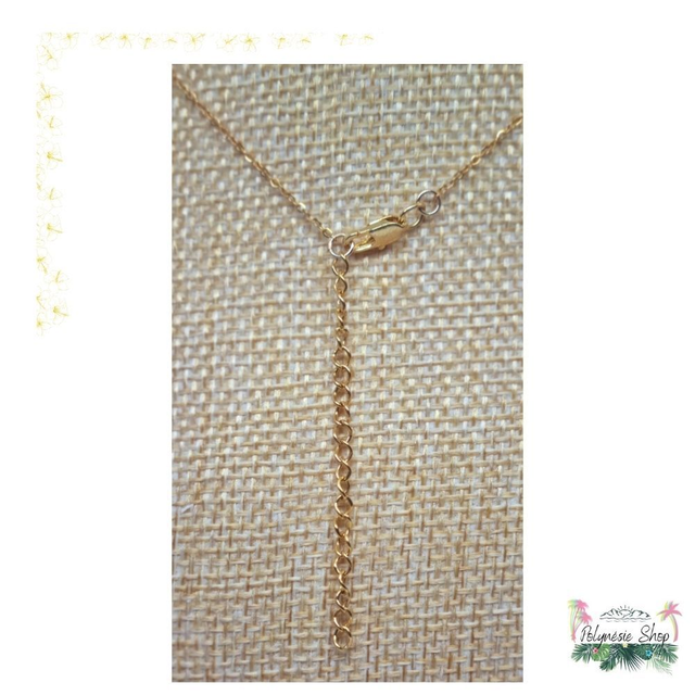 La simplicité est au rdv grâce à ce collier. La perle de Arutua, dans l'archipel des Tuamotu, est montée sur un collier en acier inoxydable gold. Il est ajustable à la convenance grâce à sa chaîne d’extension de 5cm.