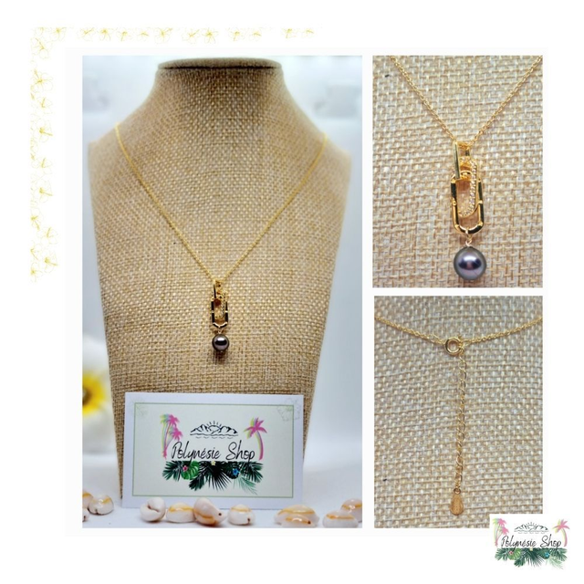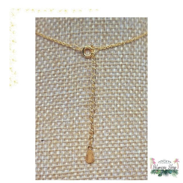 L'originalité est au rdv grâce à ce collier avec perle de Polynésie et oxydes de zirconium. La perle de Arutua, dans l'archipel des Tuamotu, est montée sur un collier en acier inoxydable gold. Il est ajustable à la convenance grâce à sa chaîne d’extension de 5cm.