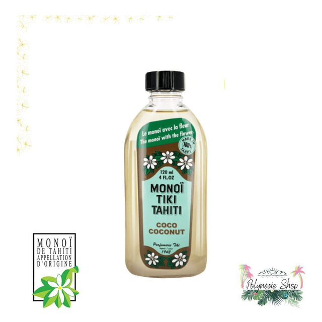 Le Monoï de Tahiti, huile sacrée, est l'huile bien être par excellence. Obtenu par macération des fleurs fraiches de Tiare Tahiti dans l'huile de noix de coco raffinée, huile de coprah, le monoï sera ton allié toute l'année: hydratation corporelle, soins capillaires, massages, ... Ses bienfaits n'ont aucune limite.